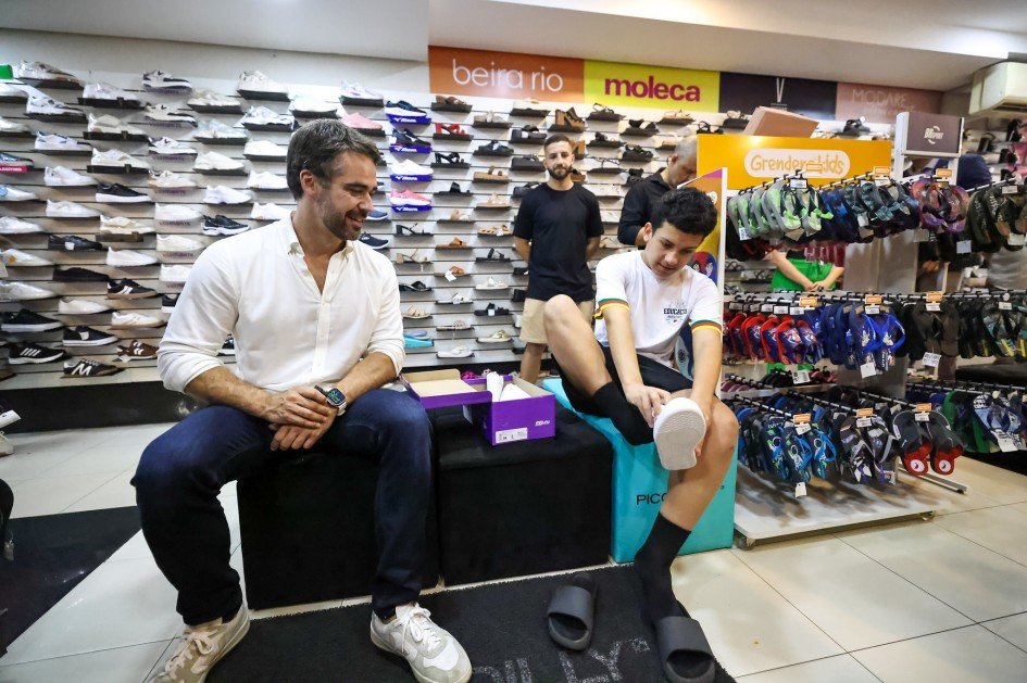 O governador do Rio Grande do Sul, Eduardo Leite, acompanhou nesta segunda-feira (22) o primeiro dia de entrega dos cartões do Programa Pé no Futuro,