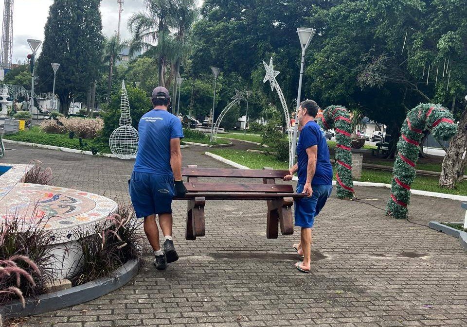 A Prefeitura de Osório, por meio da Secretaria Municipal de Meio Ambiente e Gestão Territorial, iniciou na última segunda-feira (29) a instalação de novos equipamentos urbanos em diferentes pontos do município. Na Praça Nossa Senhora da Conceição, conhecida como Praça da Catedral, foram colocados 15 bancos de madeira e concreto, ampliando as opções de descanso para moradores e visitantes que frequentam o espaço.