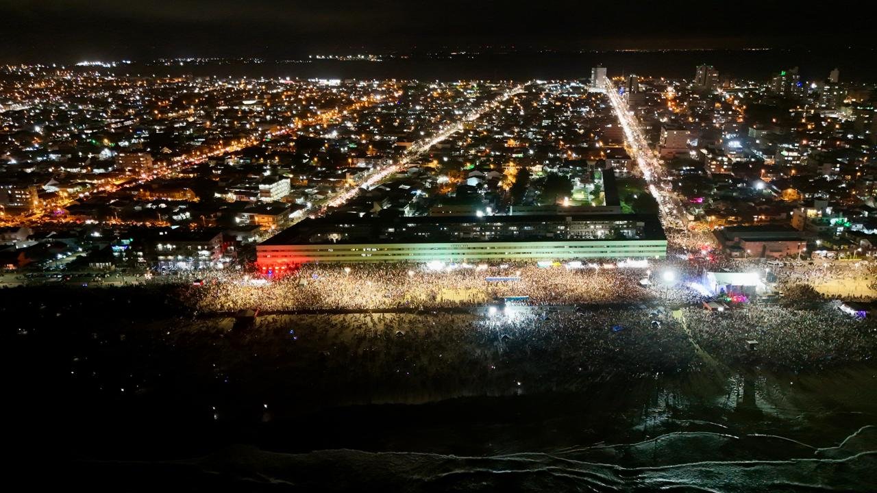 O Réveillon 2026 entrou para a história de Tramandaí ao reunir mais de 1,2 milhão de pessoas na virada do ano, consolidando o município como um dos principais destinos do Rio Grande do Sul para as celebrações de Ano-Novo. Somente na Avenida Beira-Mar, cerca de 700 mil pessoas acompanharam o show nacional da dupla Marcos & Belutti, principal atração da noite.
