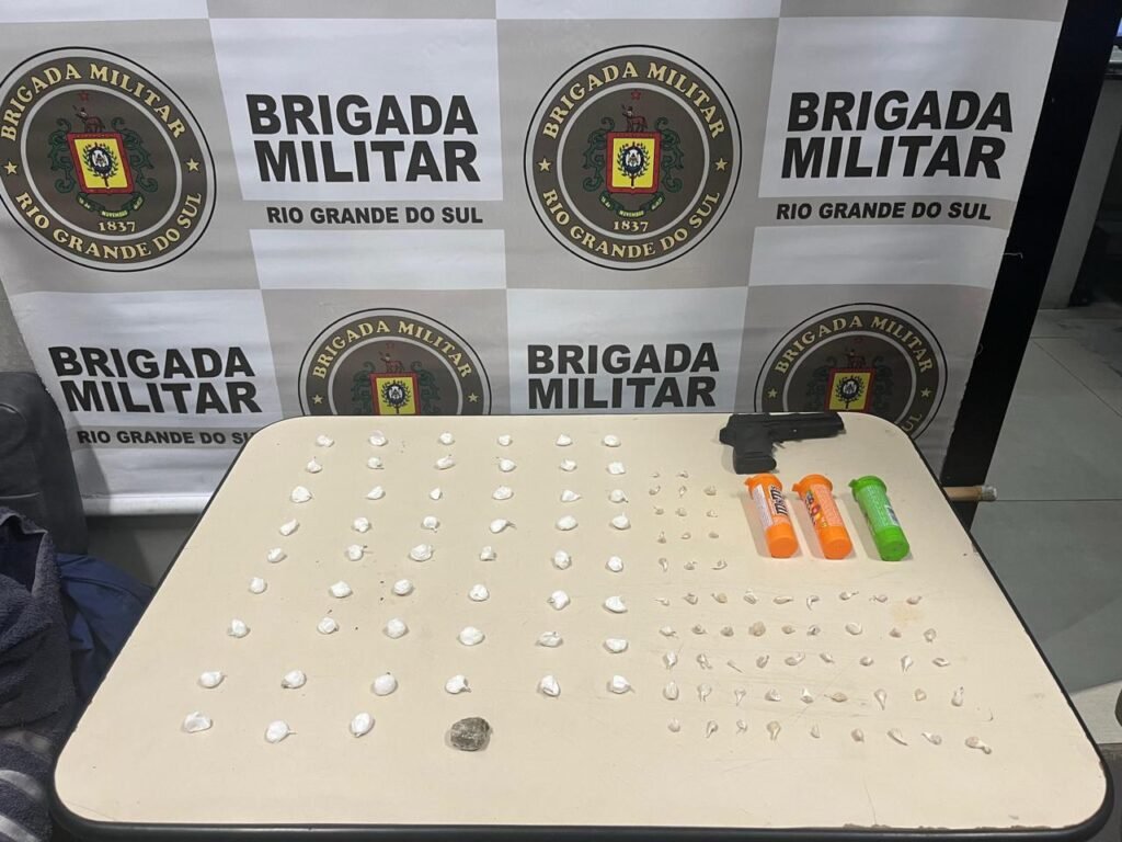 Em outra ocorrência, uma guarnição da Brigada Militar realizava patrulhamento quando avistou seis indivíduos reunidos em uma esquina. Ao perceberem a aproximação da viatura, os suspeitos fugiram. Dois deles foram alcançados e abordados pelos policiais.