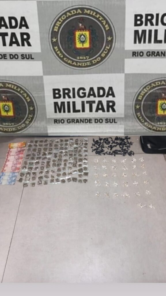 Já em Torres, uma equipe do 6º Batalhão de Polícia de Choque (6º BPChq) abordou um homem de 20 anos. Com ele, foram apreendidas quatro porções de cocaína (23 gramas), três porções de maconha (25 gramas) e R$1.021 em dinheiro.