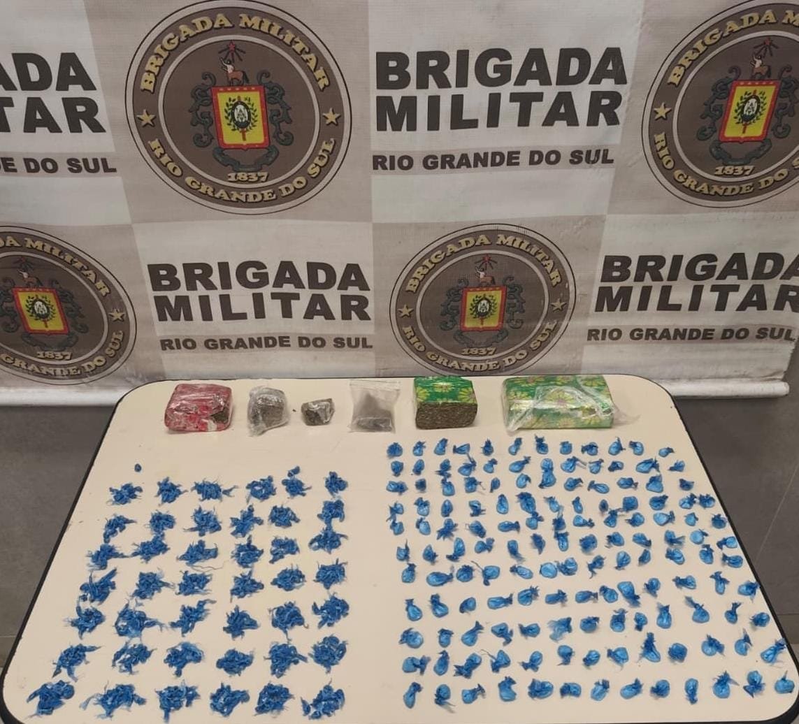 Em Capão da Canoa, durante patrulhamento com base em trabalho de inteligência, o Pelotão de Força Tática abordou um homem. Com ele, foram apreendidas 420 porções de crack, 140 porções de cocaína, seis porções de maconha e uma bolsa.