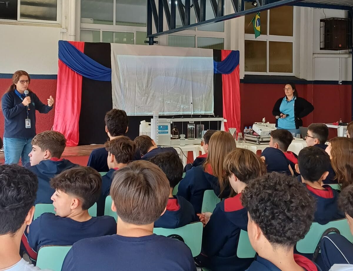Estudantes do 7º ano da Escola de Educação Básica São Domingos, unidade do Sagrado Rede de Educação, em Torres, participaram de duas palestras promovidas pela
