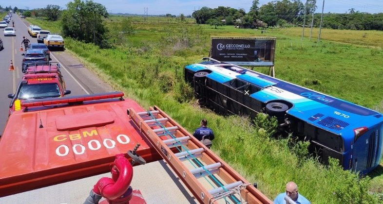 Um acidente envolvendo um ônibus deixou cinco pessoas feridas na manhã deste sábado (27) na ERS-486, no trecho entre o município de Terra de Areia